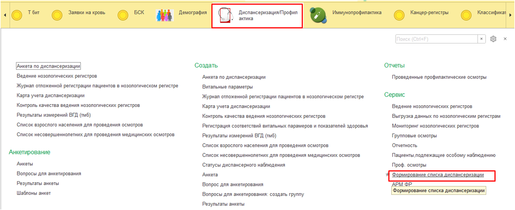 Рис. 1 Обработка «Формирование списка диспансеризации»