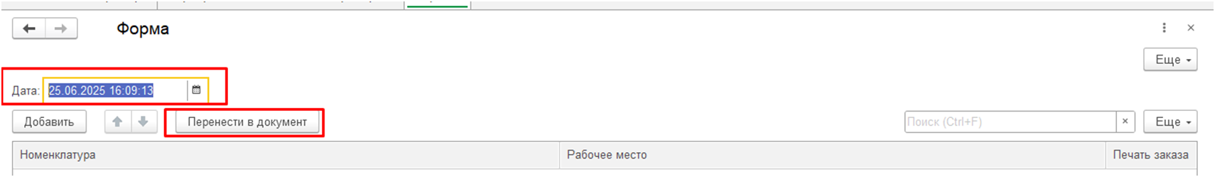 Таким образом, открывается форма, на которой отражены услуги согласно медицинской программе для гос./муниципальных служащих. На форме назначения услуг, при необходимости изменяем дату в поле «Дата», рабочее место - в столбце «Рабочее место», также можно добавить дополнительные услуги с помощью кнопки «Добавить». Для осуществления массового назначения услуг пациентам на форме необходимо нажать кнопку «Перенести в документ» (рис. №12).