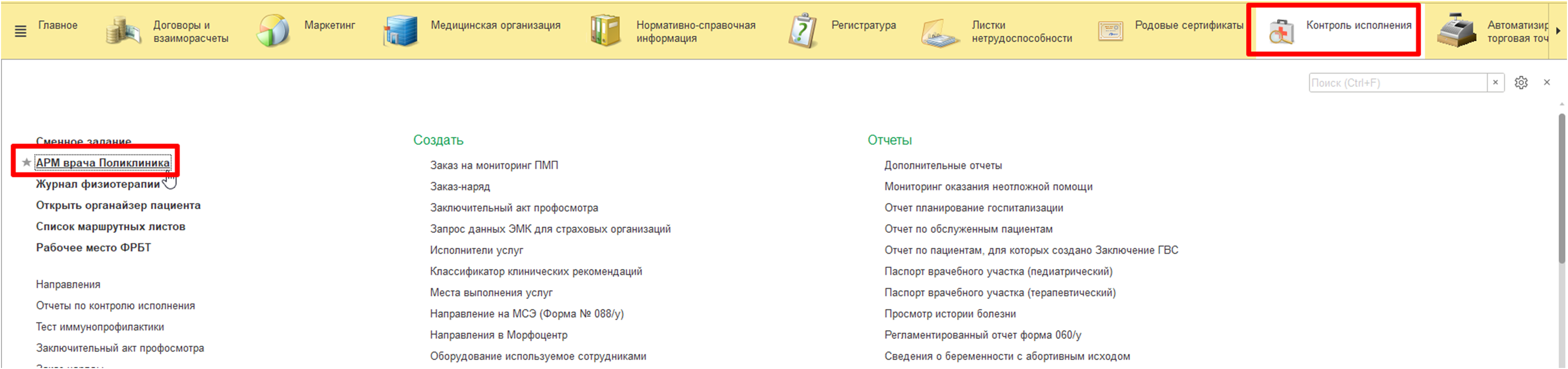 Рис. 21 Переход по ссылке «АРМ врача Поликлиника»
