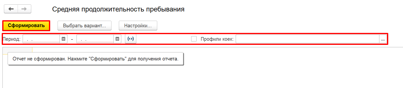 Указываем период и профиль коек, нажимаем «Сформировать»