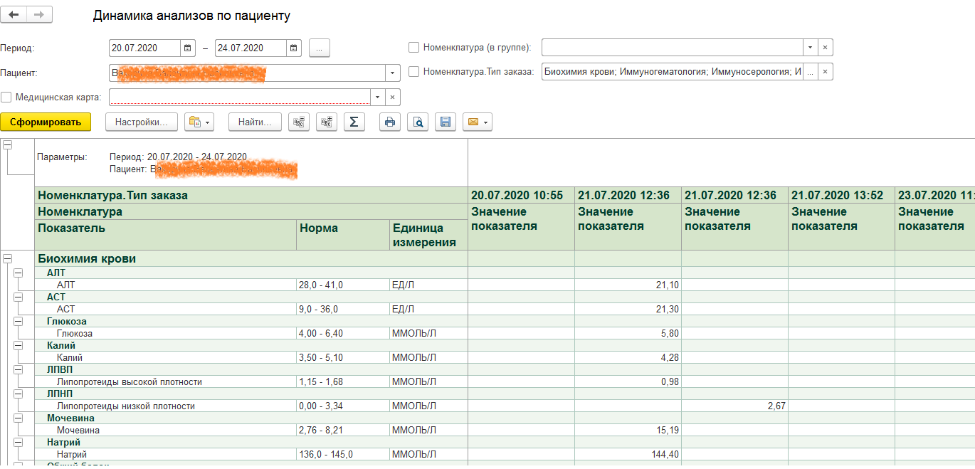 Для формирования отчета необходимо заполнить параметры отбора и нажать кнопку «Сформировать».
