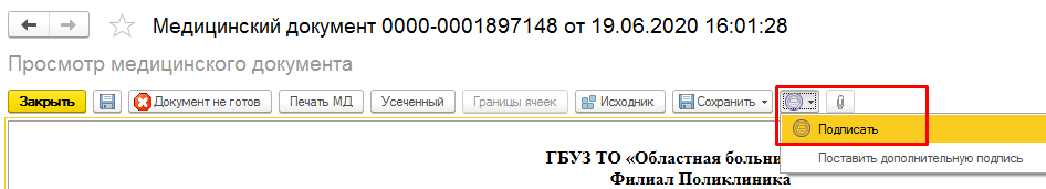 В случае ошибочного нажатия «Документ готов» можно отменить действие, нажав кнопку «Документ не готов».