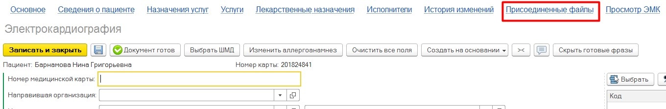 Более подробнее функционал присоединения внешних файлов описан в п. 1.6.4 «Присоединение внешних файлов к медицинскому документу».